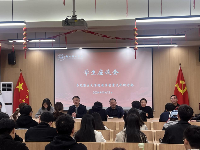为进一步推动思政课教学改革,不断提升思政课教学质量,11月12日,郑州科技学院马克思主义学院组织召开教学质量文化月系列活动之学生座谈会,会议由马克思主义学院副院长马家生主持,学院班子成员、教研室主任和来自学校各二级学院不同专业的35名学生代表参加会议。