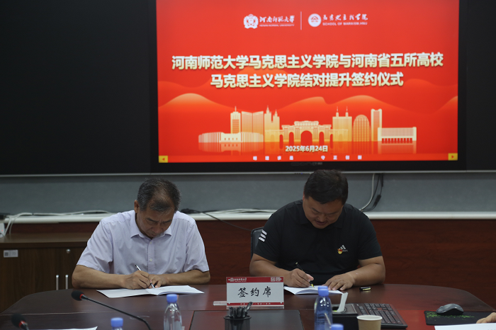6月24日,河南师范大学马克思主义学院与鹤壁能源化工职业学院思政部等省内五所高校马克思主义学院结对提升签约仪式暨高校思政课内涵式发展研讨会在新乡举行。结对高校的马克思主义学院领导班子、教师代表等参加会议。河南师范大学党委副书记张尚字出席并致欢迎辞。河南师范大学马克思主义学院党委书记、院长蒋占峰主持。
