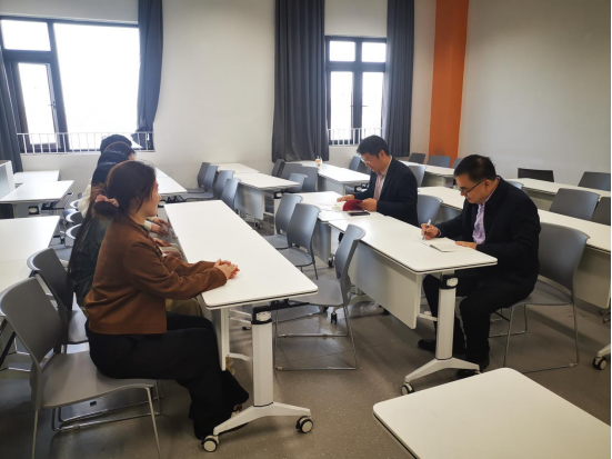 调研组一行首先深入课堂,分别听取了高明、闫鑫、赵岚三位思政课教师的现场授课。三位教师对照课程教学目标,结合高职院校职业教育的特点、根据学生的专业和需求、围绕促进学生就业,开展组织教学,展示了各具特色的教学风采。课后,调研组专家与授课教师进行了面对面交流。专家组一致认为,三位教师在课件制作、课程内容选取、教学方法的运用、授课节奏的把控、及教学亲和力等方面表现良好,能够较好地完成课堂教学任务。